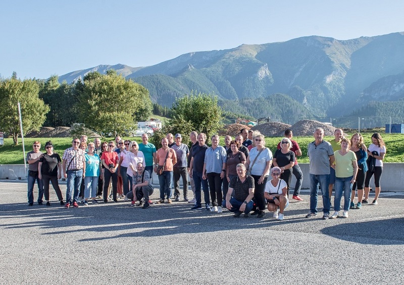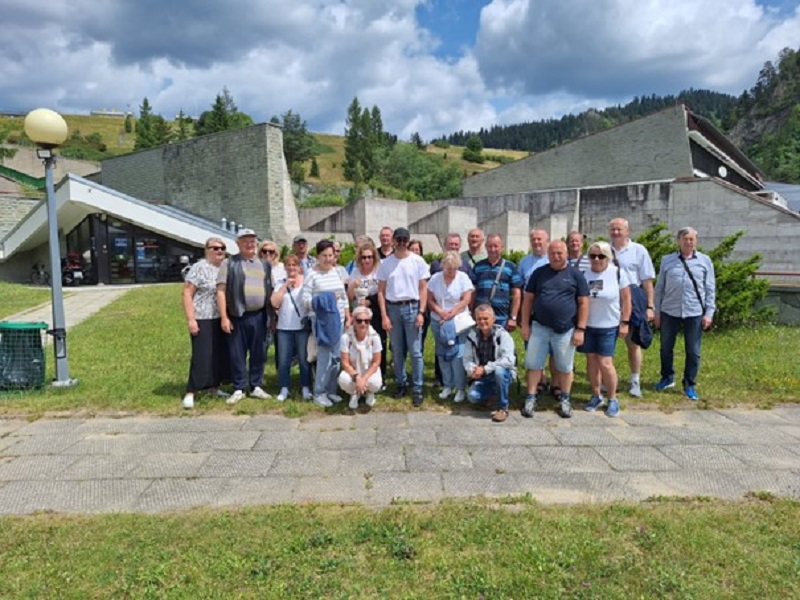 Nasza obecność na wyjeździe to także wspólne zdobywanie wiedzy. Oto nasza grupa przed wejściem do wystawy zapory wodnej w Czorsztynie. Ten techniczny majstersztyk był dla nas fascynującym miejscem. Podczas zwiedzania dowiedzieliśmy się wielu ciekawostek, a wspólne maszerowanie po koronie zapory było kolejnym krokiem w naszym „Marszu po zdrowie”. Jak widać, słońce nas nie opuszczało, a humory dopisywały każdemu uczestnikowi!