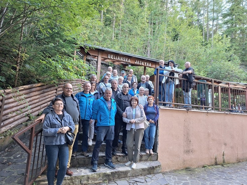 Początek naszej pienińskiej przygody miał miejsce na Słowacji. Oto jedna z naszych grup u progu monumentalnej Jaskini Bielańskiej.  Wejście do chłodnych czeluści jaskini było dla nas nie tylko turystyczną atrakcją, ale i doskonałą profilaktyką zdrowotną. Stała, niska temperatura i specyficzny mikroklimat jaskini działają kojąco na układ oddechowy, a pokonanie setek schodów pod górę było świetnym, darmowym treningiem wydolnościowym.