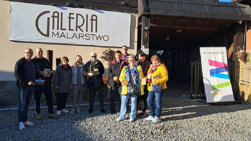 Zanim chwyciliśmy za pędzle, zostaliśmy zaproszeni do progu „Galerii Malarstwo”. Atmosfera tego miejsca, przesycona zapachem farb i werniksu, od razu udzieliła się całej grupie. Pani Ewa, z właściwą sobie pasją, wprowadziła nas w świat kompozycji i barw, udowadniając, że na sztukę nigdy nie jest za późno. To właśnie tutaj, pod flagą Małopolski, teoria spotkała się z praktyką, a strażacka dyscyplina ustąpiła miejsca artystycznej swobodzie.